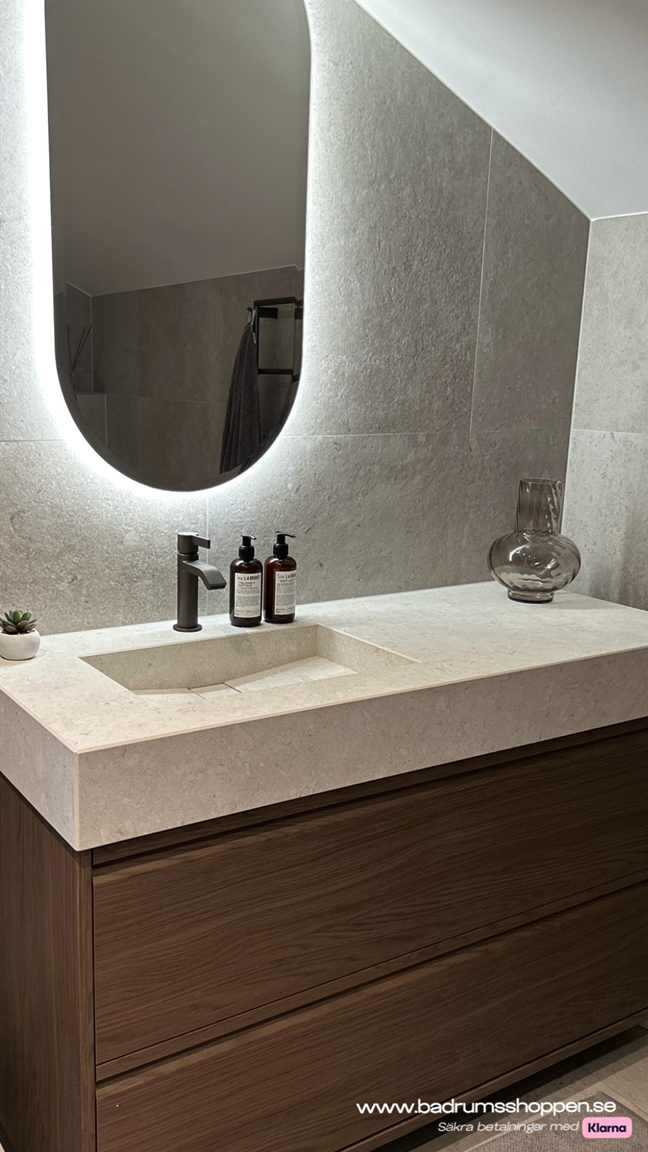 För att skapa ett snyggt och väldesignat badrum med dold förvaring kan du bygga in ett eller flera högskåp i väggen, vilket ger en diskret och exklusiv hotellkänsla. I Ängsjön kommoden kan du komplettera med ett eluttag i en av lådorna för att få de funktioner du önskar och behöver samt ovanpå kommoden kan du placera ett måttbeställt stenhandfat/tvättställ i DEKTON eller Bricmates material tillverkat efter måtten på Ängsjön kommoden via oss på Badrumsshoppen. Denna kombination skapar en lyxig och genomtänkt helhet men till en betydligt lägre kostnad än motsvarande lösningar från många traditionella badrumsmärken på marknaden. Vi på Badrumsshoppen har ingen ekonomisk vinning i att rekommendera Ängsjön serien. Tvärtom innebär det en lägre marginal för oss eftersom vi då inte säljer våra egna kommoder. Vi lyfter den ändå eftersom vi tror på transparens och för att det är en möbel vi själva utan tvekan hade kunnat välja i våra egna hem. Vi presenterar alltid noggrant utvalda designalternativ i flera prisklasser så att du kan fatta ett tryggt och välgrundat beslut utifrån din budget och dina behov. För dig som vill gå ännu mer premium finns självklart alternativ från varumärken som HAVEN, INR och Macro Design som du kan beställa direkt via oss på Badrumsshoppen. Vår roll är att hjälpa dig hitta den lösning som ger mest värde för din investering. Vi hjälper helt enkelt våra kunder att skapa prisvärda helhetslösningar med genomtänkt design och hög kvalitet.