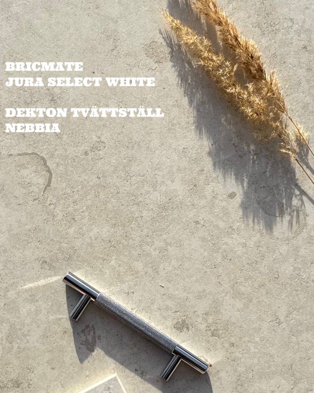 Bricmate Jura Select White och Dekton Nebbia materialprov