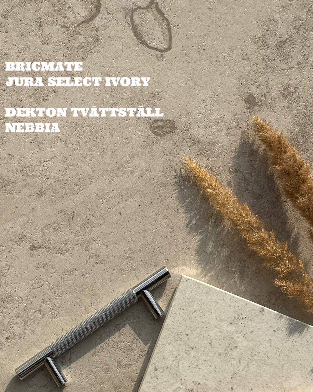 Bricmate Jura Select Ivory och Dekton Nebbia materialprov