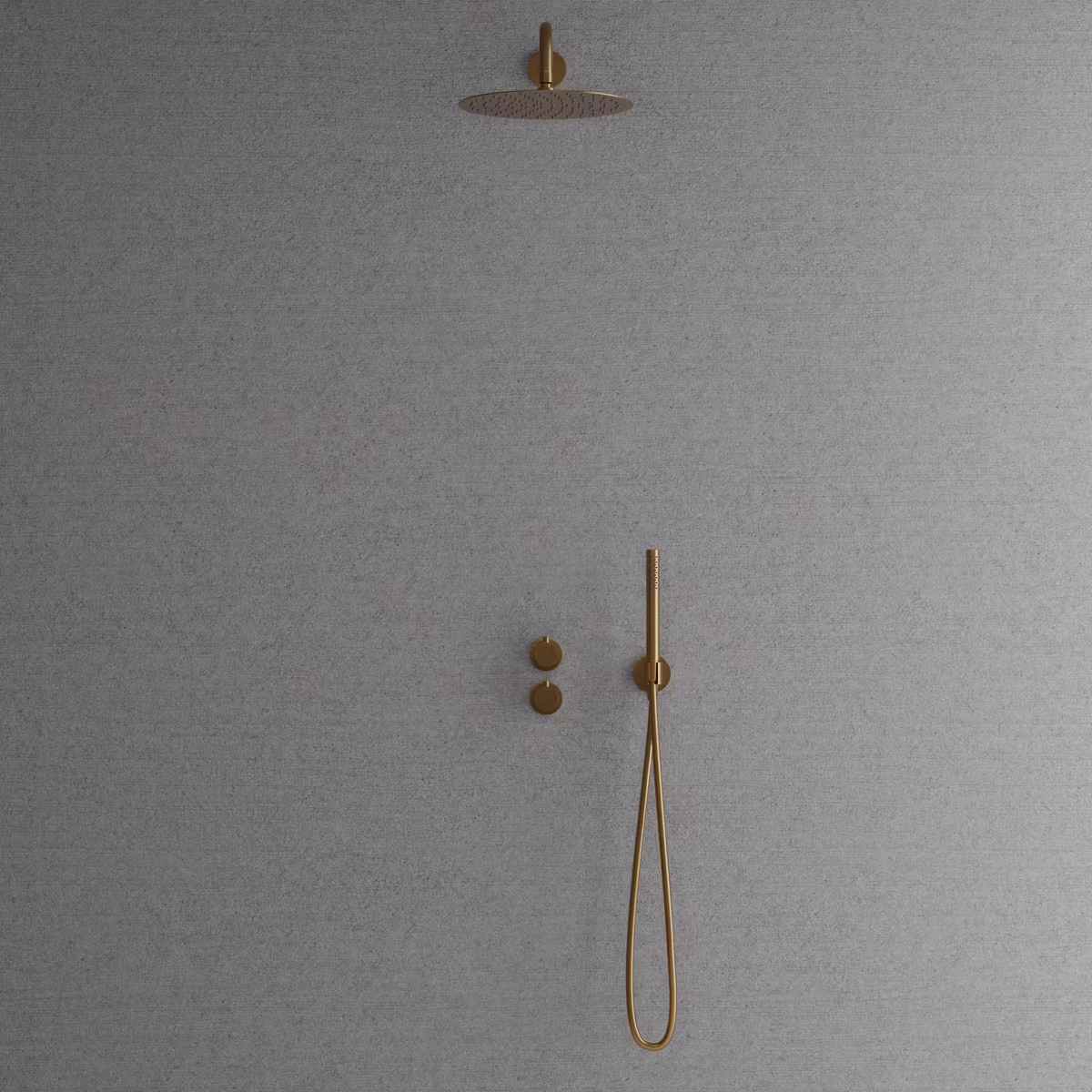 Minimalistisk takdusch - Inbyggnads takdusch från Scandtap som skapar en lyxig känsla i badrummet i färgen Sand / Guld