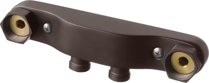 Blandarfäste för utanpåliggande rör med anslutningsrör 40 cc. Tillverkad i mässing.