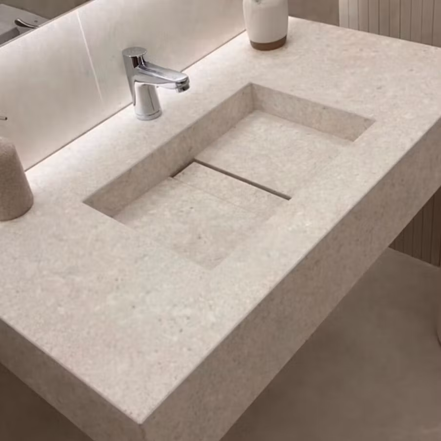 DEKTON Tvättställ - Ett vägghängt handfat med premium känsla! Den ultrakompakta, porfria ytan tål repor, fläckar, värme och UV – enkel att hålla ren i vardagen.