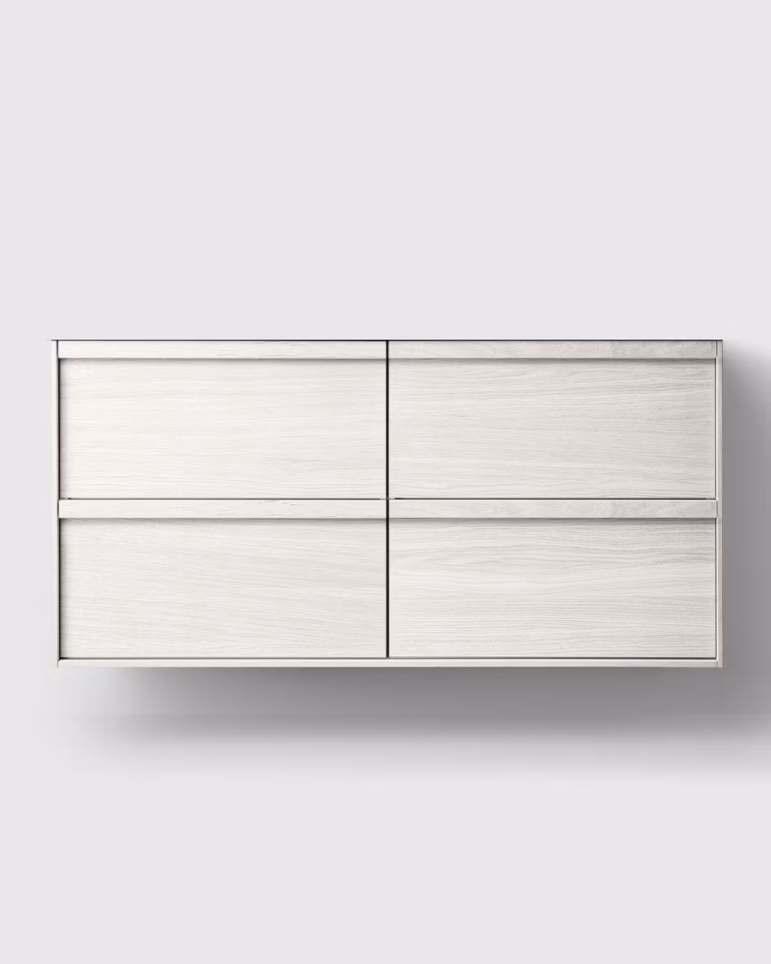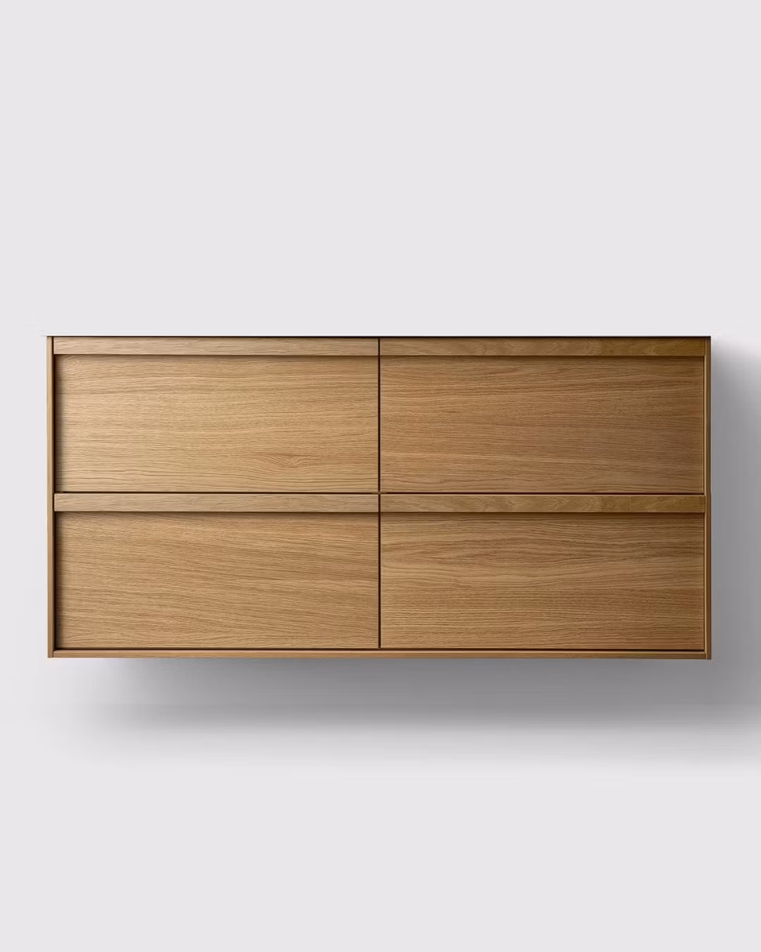 Perfekt för ett modernt badrum i skandinavisk design – kommoden har en grepplist och rymliga, mjukstängande lådor och är tillverkad i hög kvalitet för lång hållbarhet.